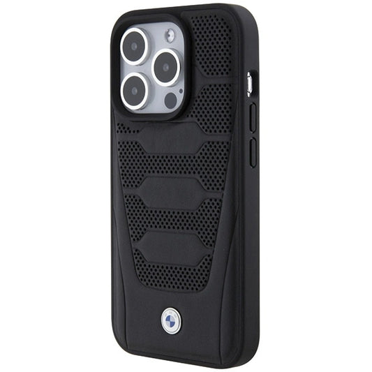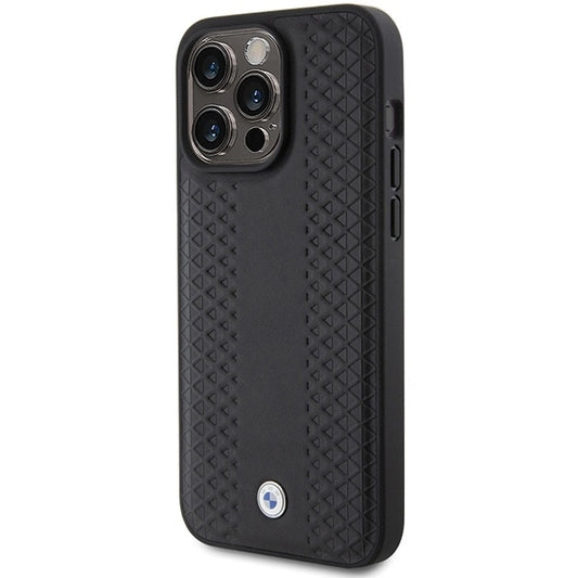 Capa iPhone 15 Pro BMW / Textura em Pele e Risca / Preto