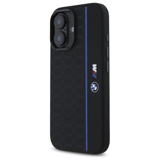 Capa para iPhone 16 Pro Max BMW / Preto / Silicone Hexagon Blue Line MagSafe