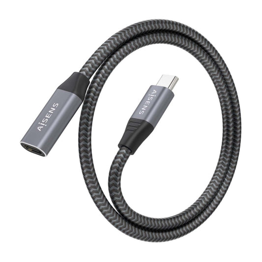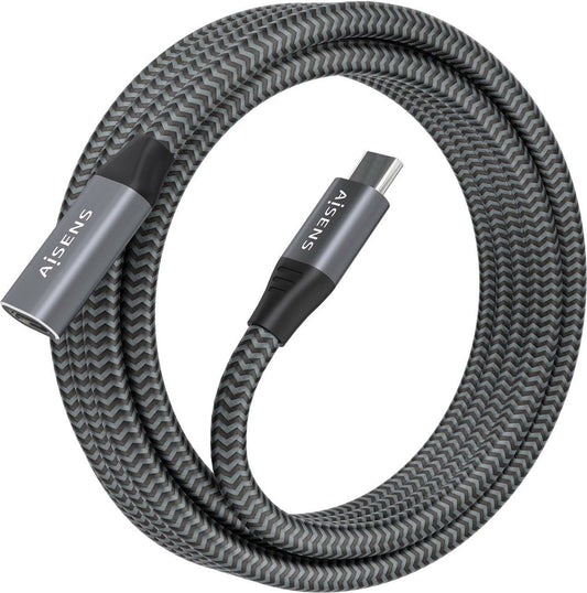 Cabo Extensor USB 3.2 Aisens A107-0636/ USB Tipo-C Macho para USB Tipo-C Fêmea / 100W / 20Gbps/ 2m/ Cinzento