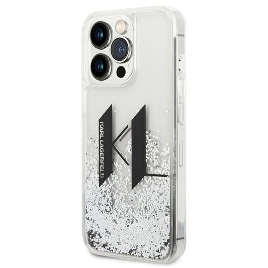 Capa iPhone 14 Pro Karl Lagerfeld / Srebrny/Silver / Liquid Glitter Big KL