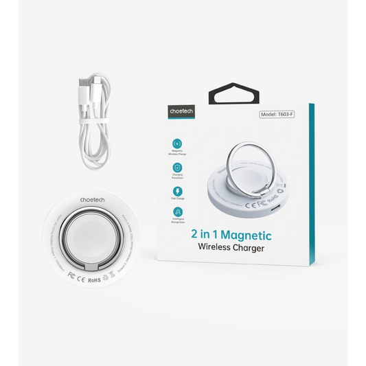 Carregador Sem Fios 2-em-1 Choetech T603-F, com Suporte (branco)