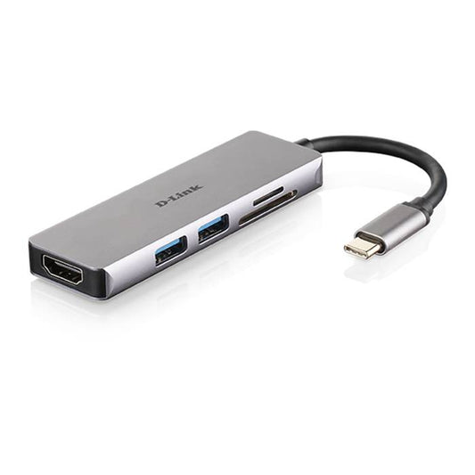 Adaptador D-Link USB-C p/ 2 USB 3.0 + 1 HDMI + Leitor de Cartões (SD+MicroSD)
