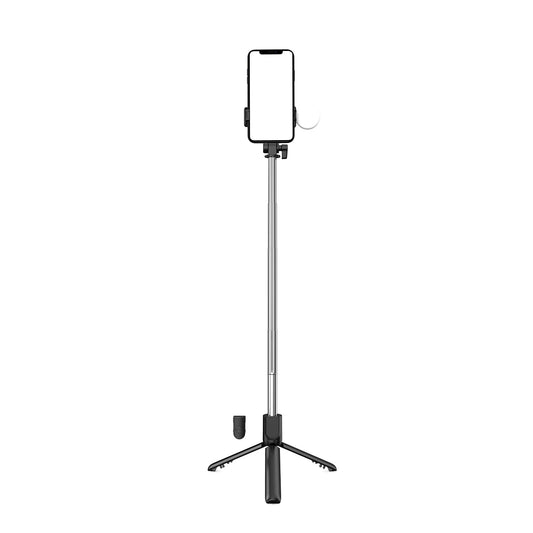 Selfie Stick Tripé WH1YXS com Luz Redonda e Suporte para Telefone / 1m / Preto