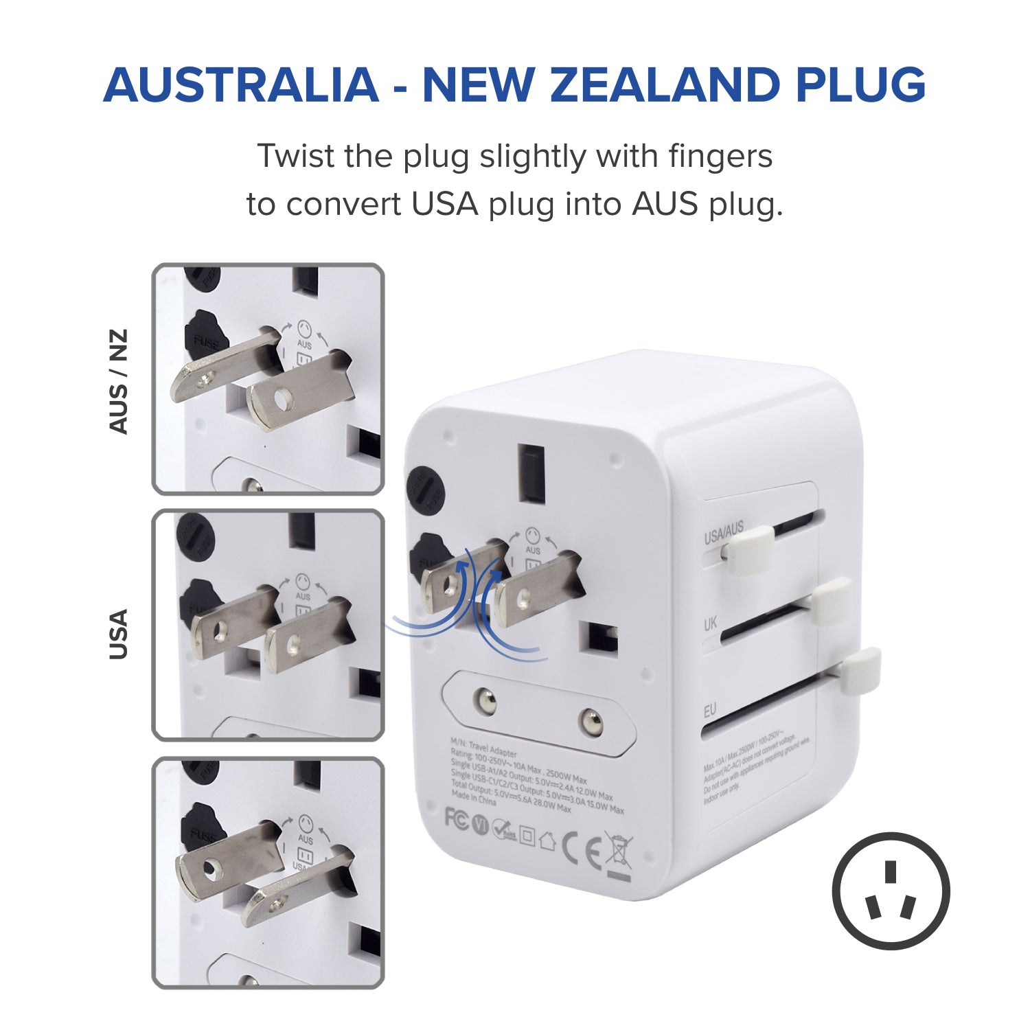 Este produto é a ferramenta ideal para carregar os seus aparelhos elétricos em mais de 224 países diferentes. O adaptador está equipado com 4 fichas de parede diferentes (retráteis), compatíveis com a Europa do Reino Unido dos EUA, Ásia, Austrália e Nova Zelândia. Com 3 sliders para alterar diferentes fichas. Ideal para viajar, graças ao seu design compacto e versátil, peso leve e pequeno tamanho.