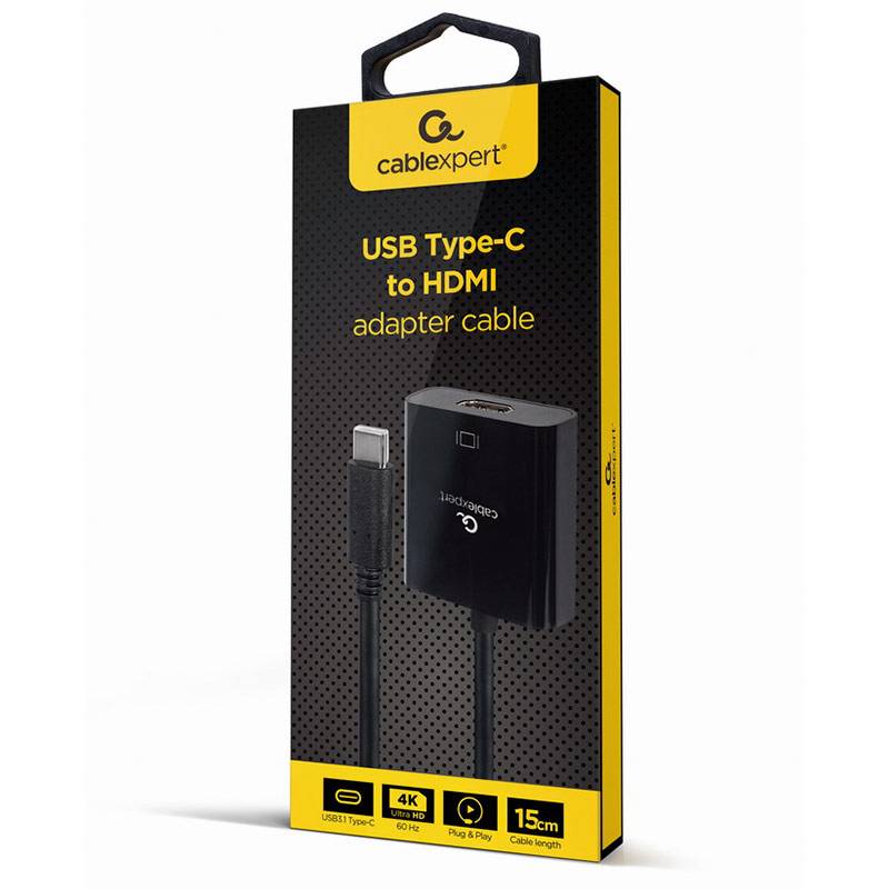 Adaptador Gembird USB-C para HDMI 4K 60Hz 15cm Preto