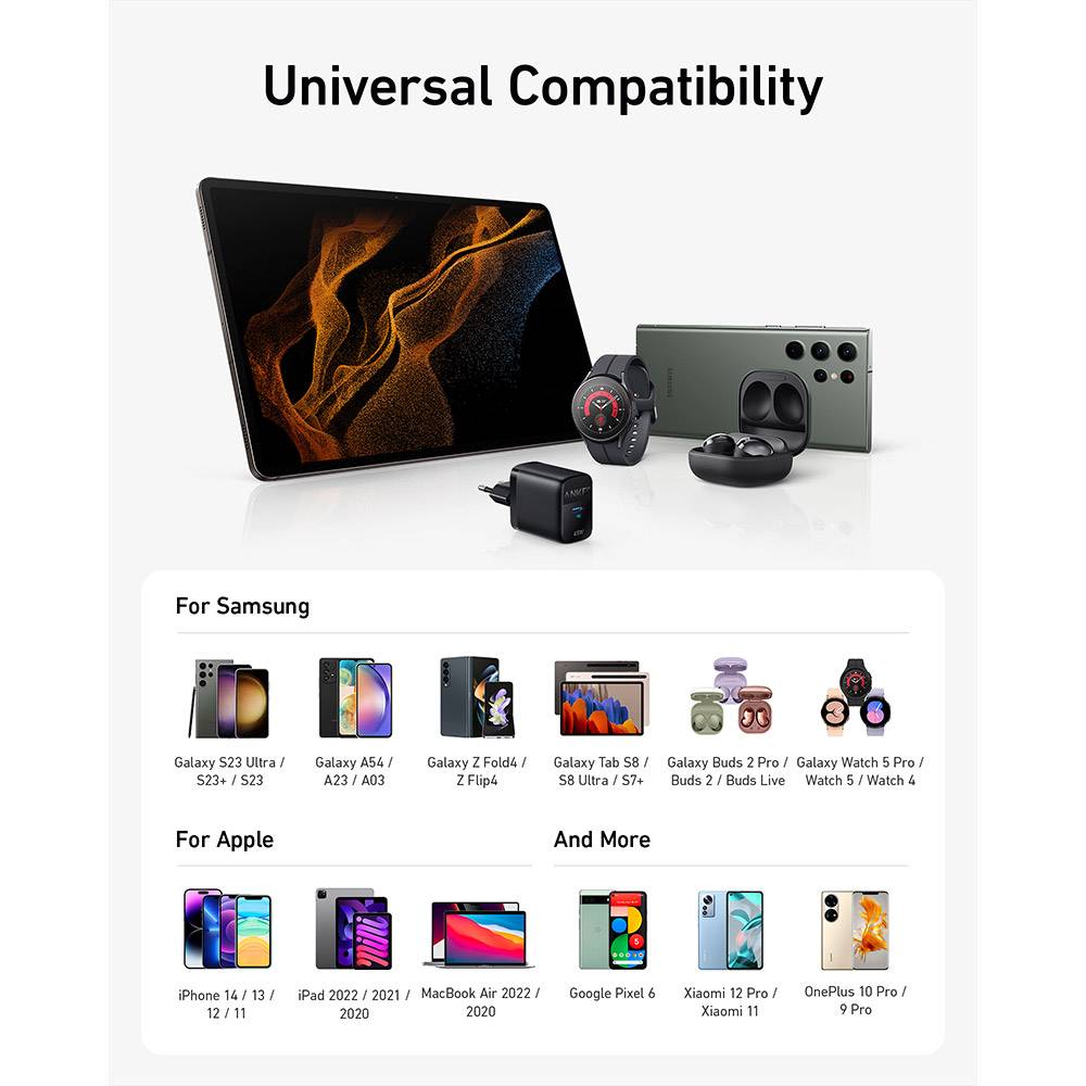 Anker 313 Charger Universal / Preto / Carga Rápida / Corrente Alterna / Interior