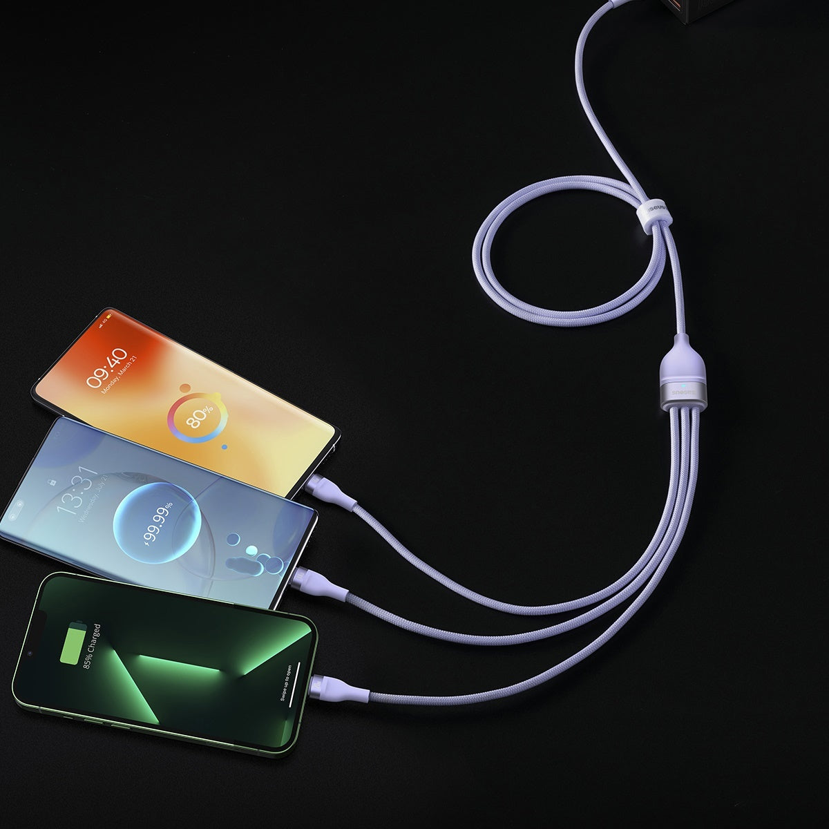Cabo 3 em 1 Baseus Flash Series 2 USB-C + micro USB + Lightning, 100W, 1.2m (Roxo)