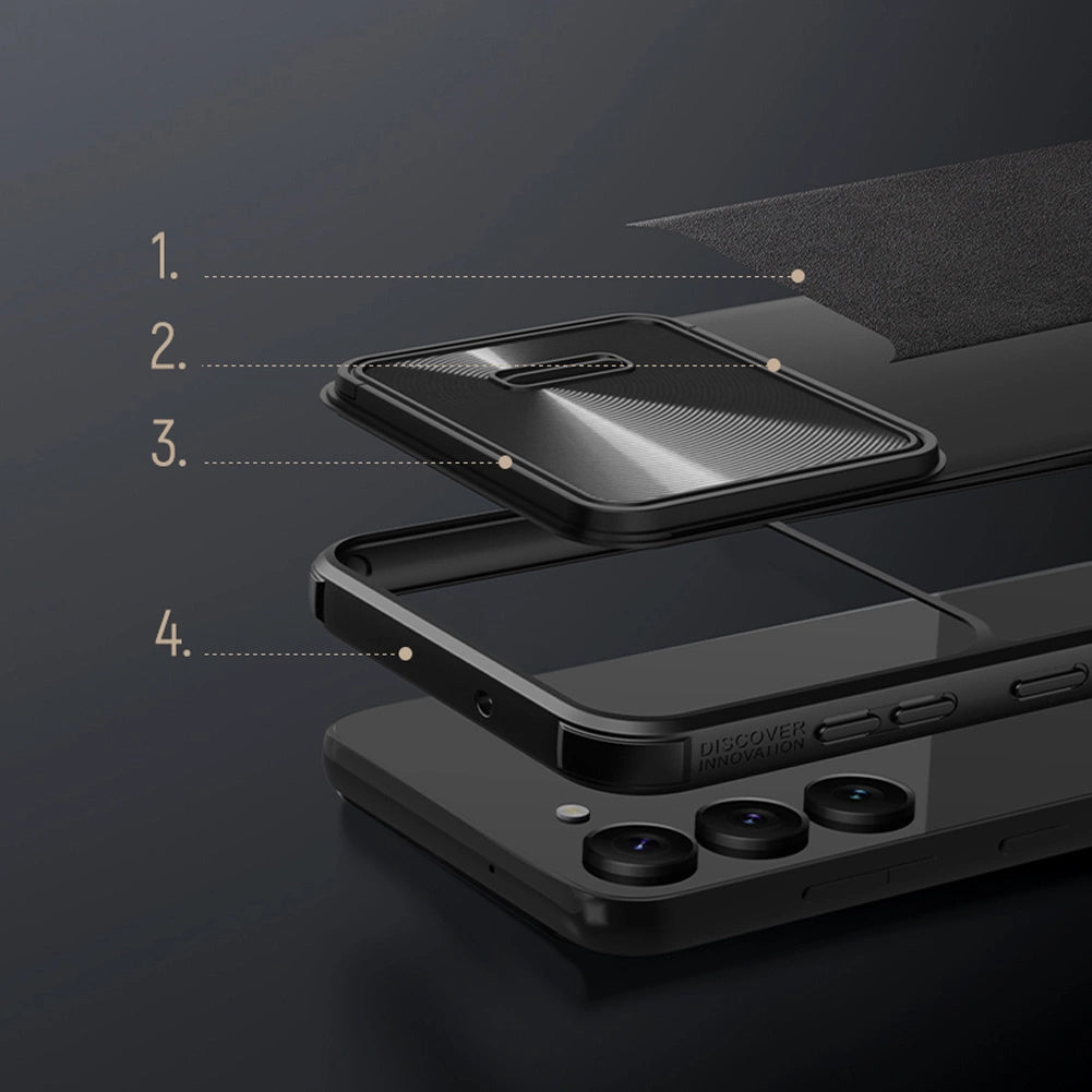 Capa NILLKIN CamShield Leather S / Preto / Samsung Galaxy S23+ com proteção de câmara