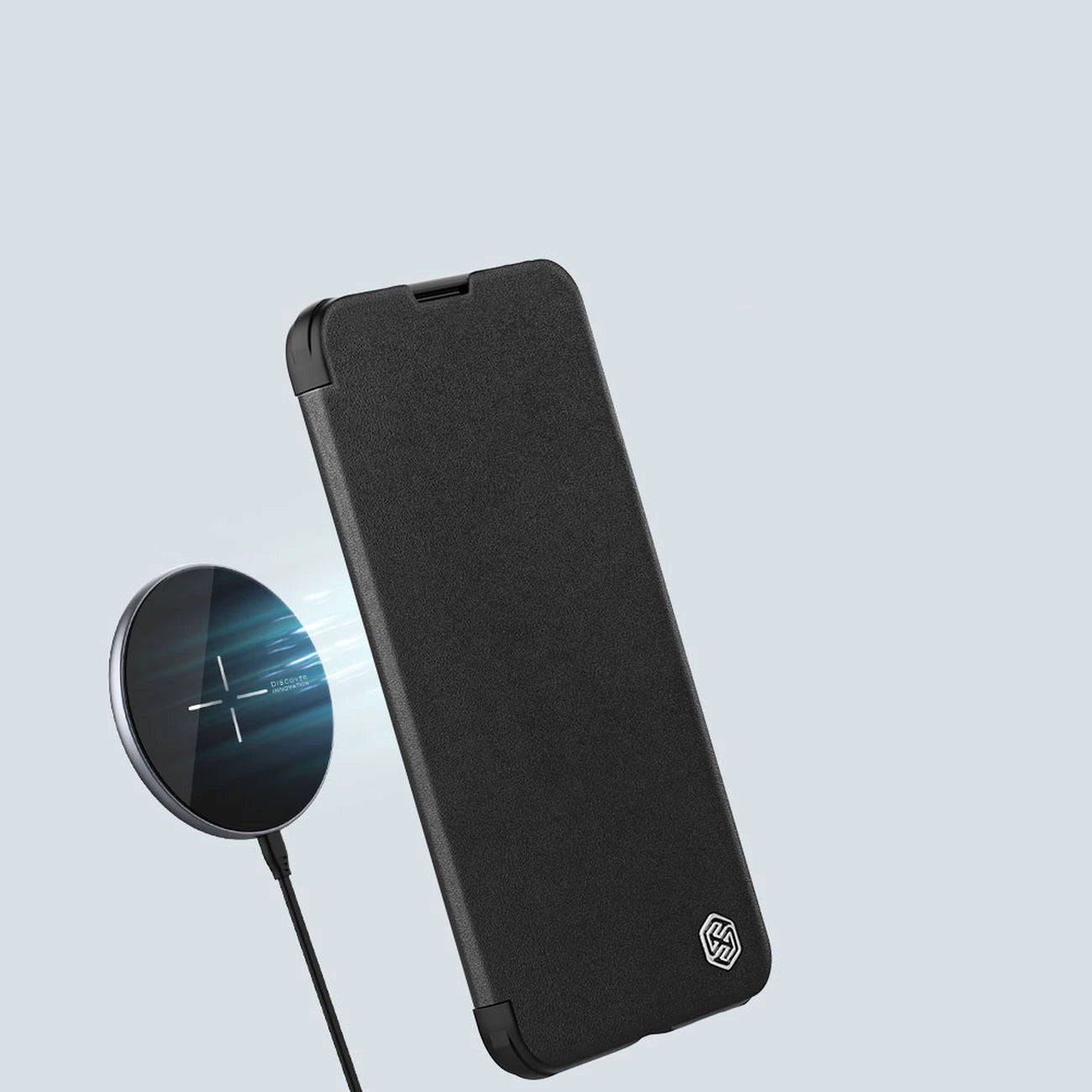 Capinha Nillkin Qin Cloth Pro para iPhone 14 Pro Max / Capa Flip / Azul