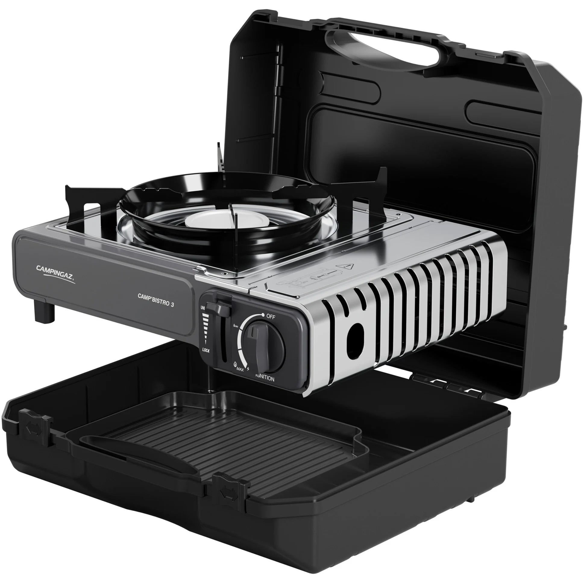 Fogão a gás de campismo Campingaz Camp'Bistro 3 em alumínio fundiddo c/ placa de grelhar