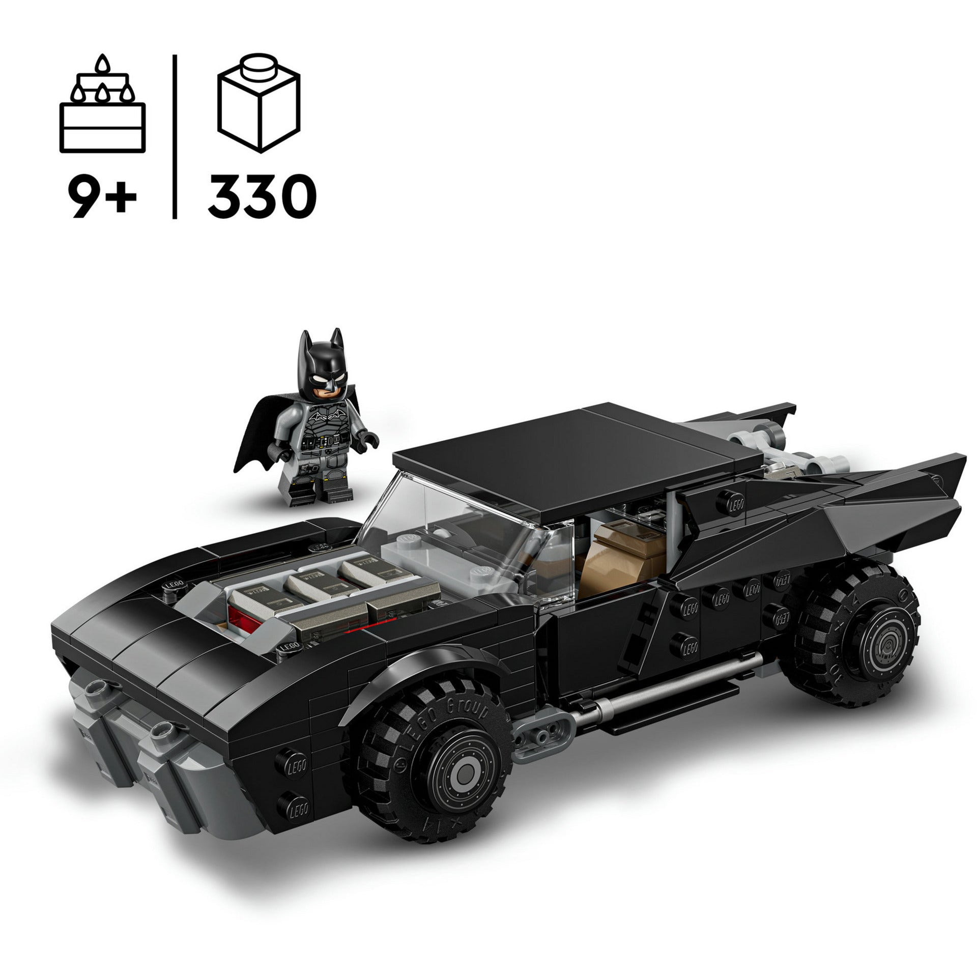 O set inclui uma minifigura do Batman com capa em tecido e um Batmobile fiel ao design do filme. O teto do veículo pode ser removido para colocar a minifigura no cockpit, permitindo brincar e recriar cenas de ação.