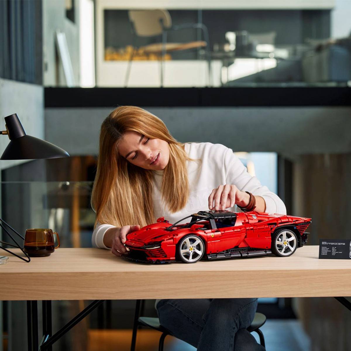 Da série LEGO® Technic Conceito de Carro Final é apresentada uma construção impressionante para os fãs adultos da Ferrari. Entre numa zona de plena consciência enquanto recria as características do modelo Ferrari Daytona SP3 em vermelho clássico com jantes cromadas. Depois coloque-o em exposição para admirar as linhas traseiras icónicas e curvas que tornam este modelo à escala 1:8 tão especial.
