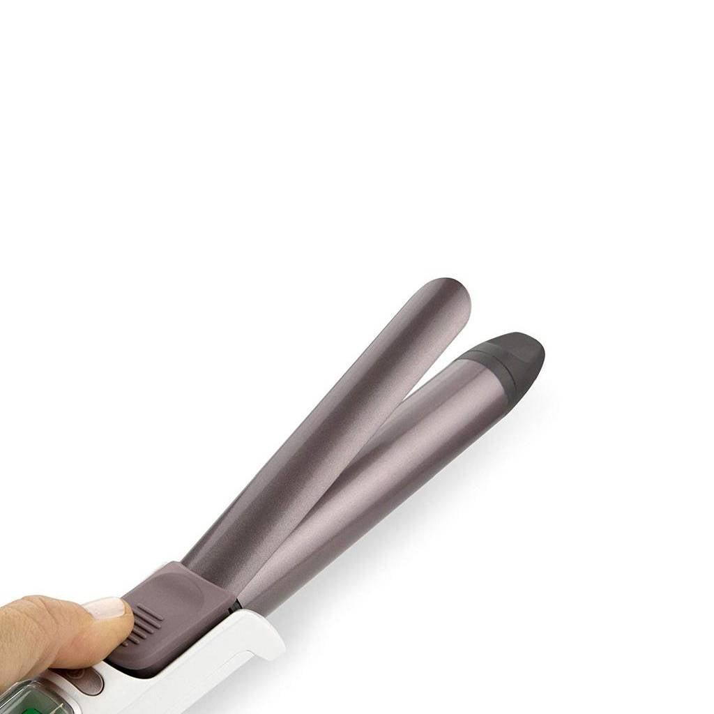 Graças ao controlo de temperatura com 8 níveis ajustáveis e a função de temporizador integrada, consegues adaptar o modelador ao teu tipo de cabelo e ao estilo que pretendes, desde caracóis suaves a ondulações bem definidas. A ponta fria e o suporte integrado tornam o uso confortável e seguro, mesmo em rotinas mais apressadas.