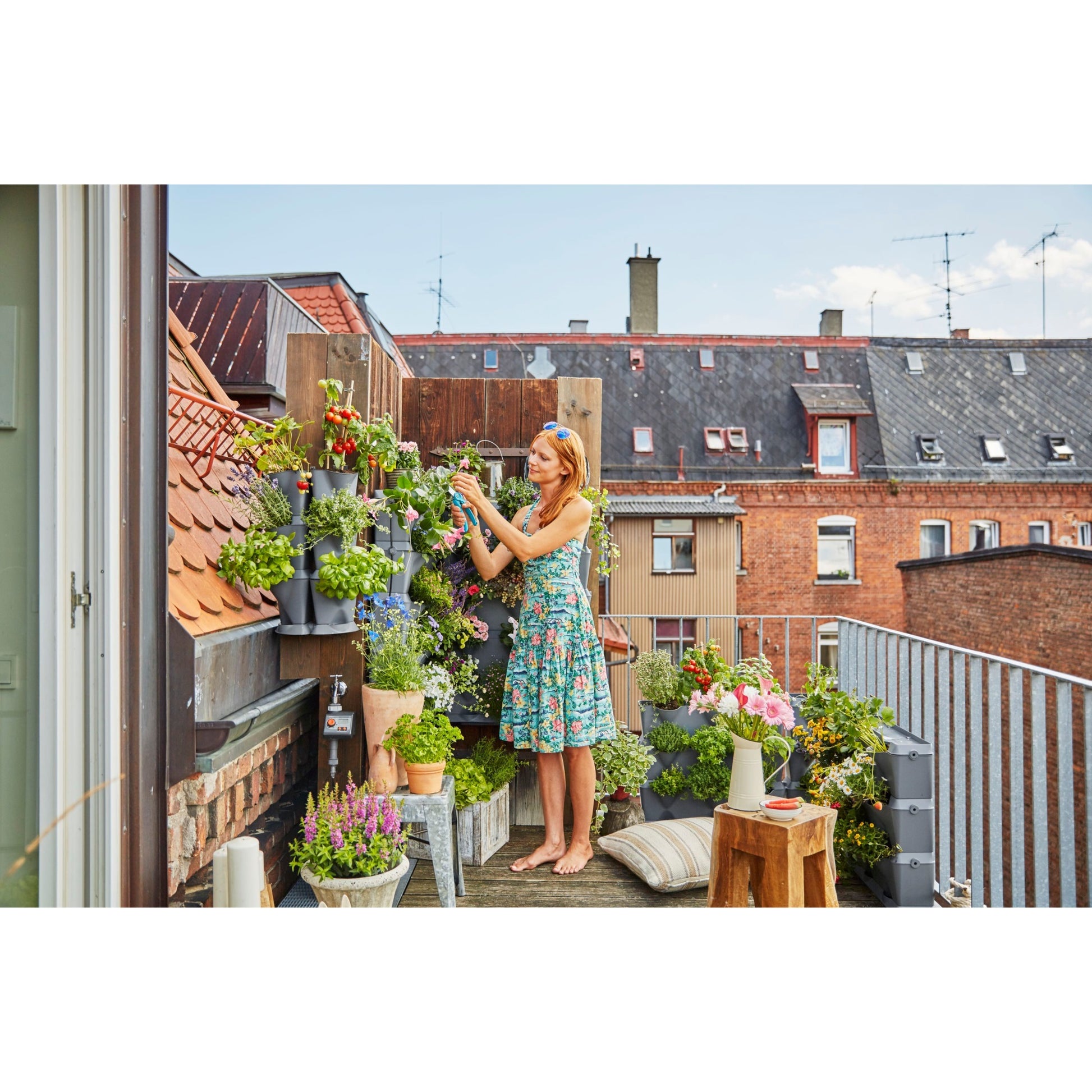 O sistema de Rega Automática Gardena NatureUp! (EAN: 4078500034937) é a solução discreta e eficiente para manter até 12 plantas bem hidratadas sem esforço. Especialmente concebido para cantos ou áreas reduzidas, este kit conecta-se diretamente à torneira e gere a irrigação com precisão, ideal para varandas, terraços ou pequenos jardins verticais.