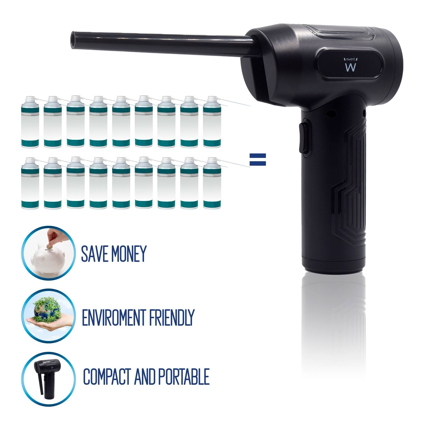 Com este spray de ar pode economizar dinheiro, uma vez que já não precisará de comprar sprays de ar comprimido. Desta forma, poupará dinheiro e cuidará do ambiente.
