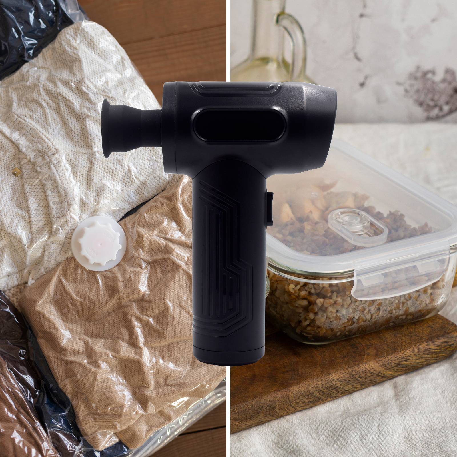 Com a deflação e os bicos de vácuo, pode esvaziar os sacos de armazenamento. Desta forma pode armazenar os seus objetos, roupas, etc. ocupando o menor espaço possível