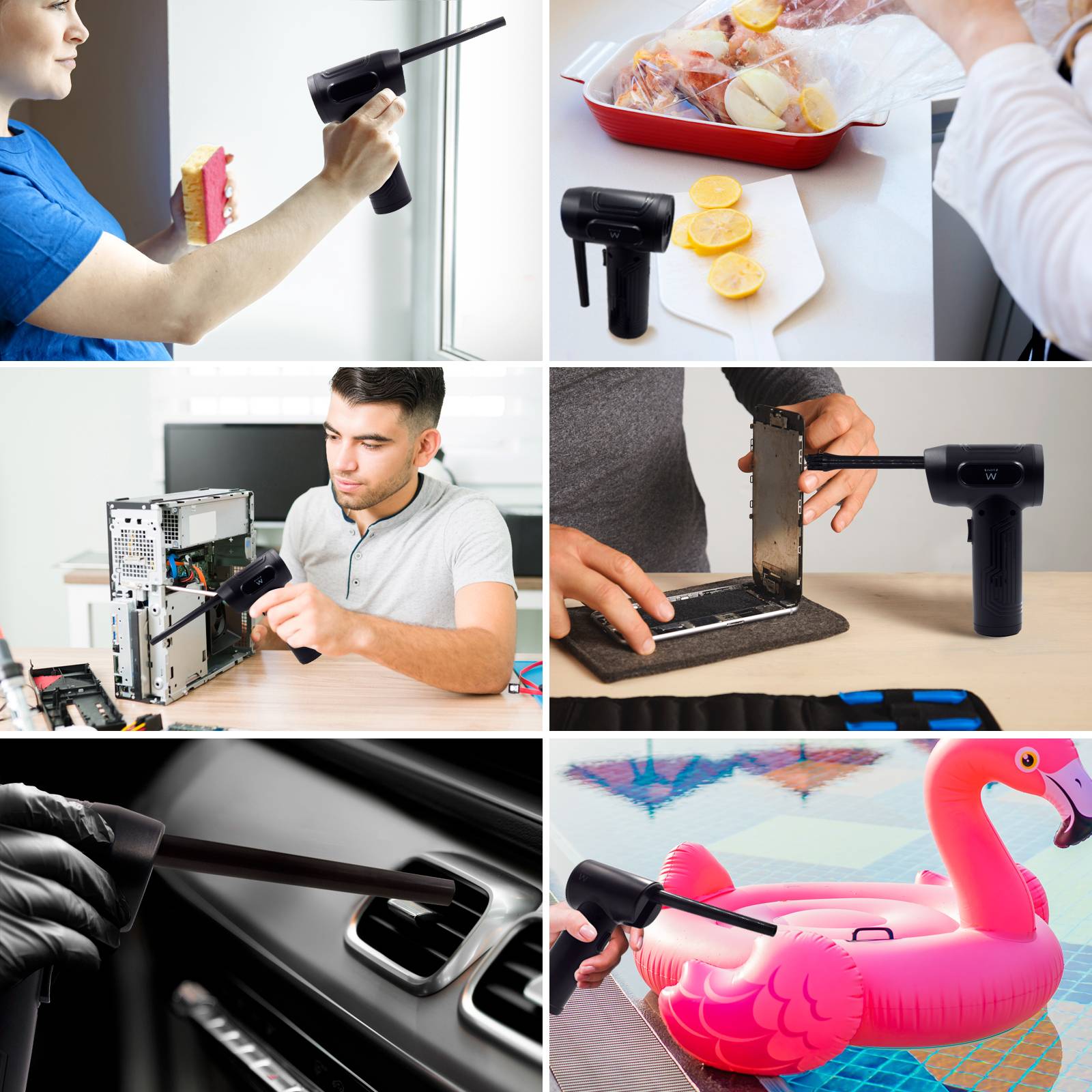 O poderoso spray de ar EWENT EW5607 proporciona um fluxo de ar poderoso e contínuo que remove a sujidade das pequenas ranhuras e cavidades de qualquer objeto. Além disso, graças ao bocal com uma escova, permite uma limpeza profunda e remove qualquer vestígio de pó ou qualquer sujidade não aderente sem qualquer problema. Com o outro bocal e modo de insuflação, pode ser usado como bomba de insuflação para insuflar barcos, colchões de ar, sofás de ar, jangadas, etc.