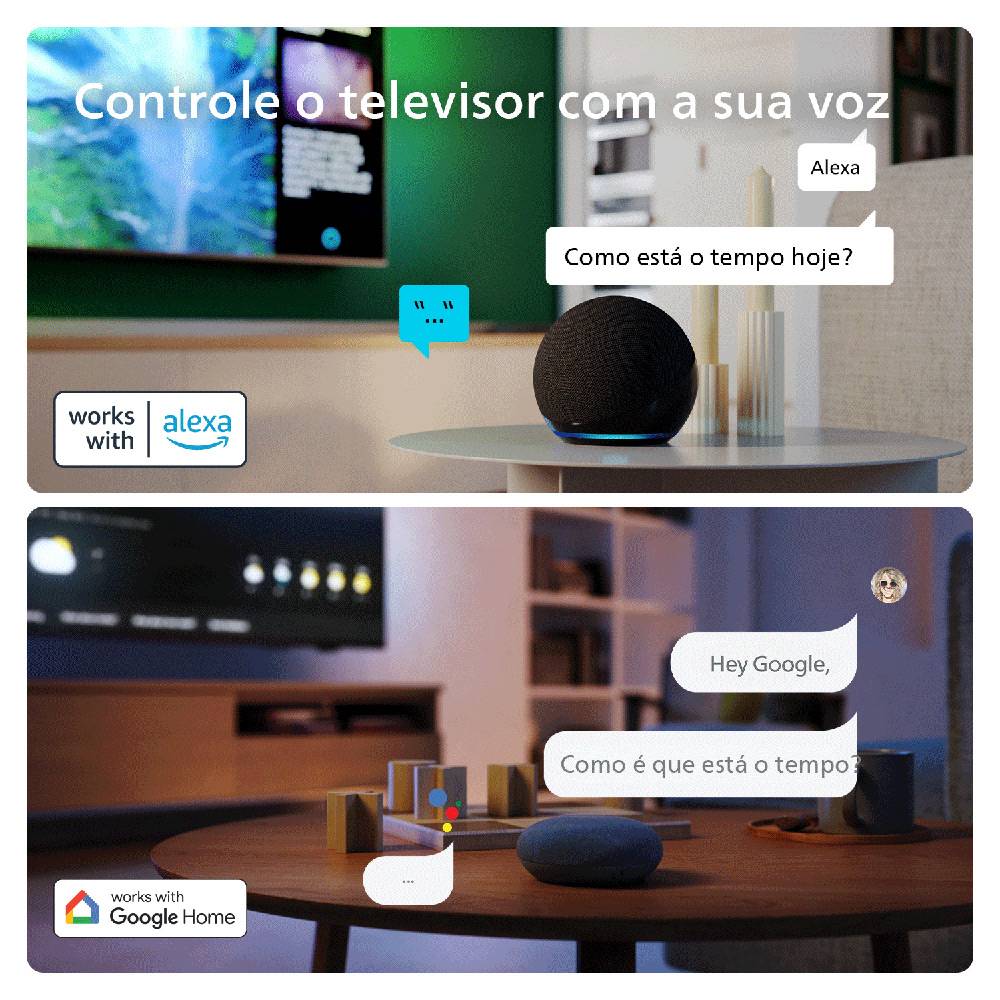 Desfrute de tudo isto com este televisor Ambilight rico em funcionalidades! Obtenha também uma excelente imagem, som Dolby Atmos realista e jogos fluidos. Independentemente do que vê ou joga, o Ambilight aumenta as emoções, para uma noite de cinema sem igual.